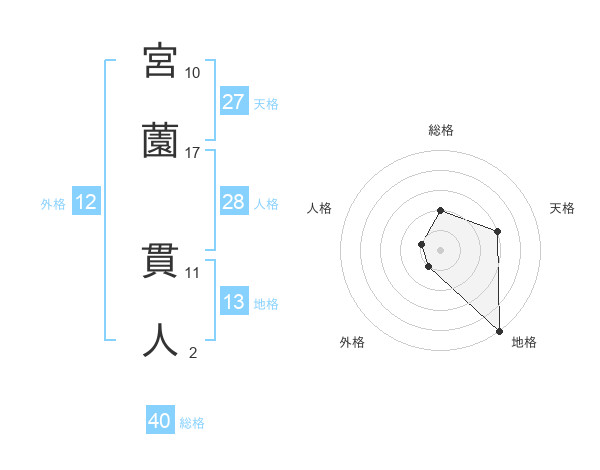 宮薗 貫人さんの総格は40画の2点!