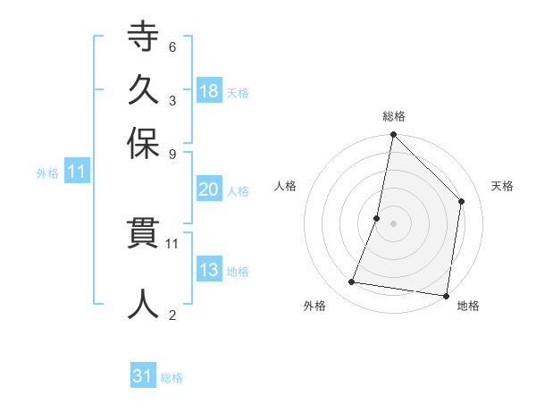 寺久保 貫人さんの総格は31画の5点!