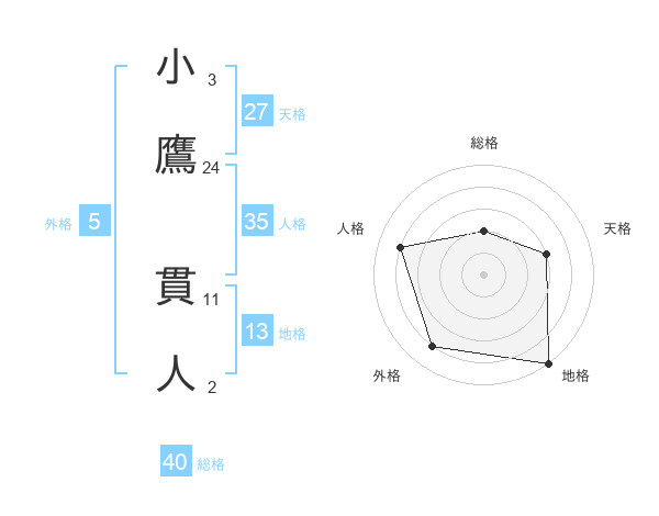 小鷹 貫人さんの総格は40画の2点!