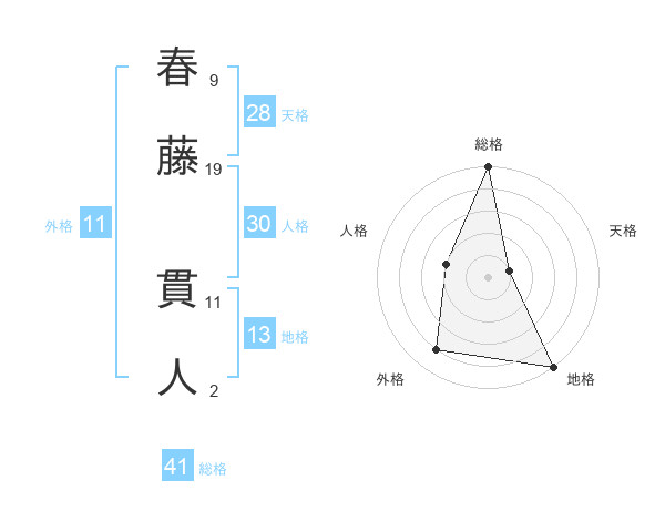 春藤 貫人さんの総格は41画の5点!
