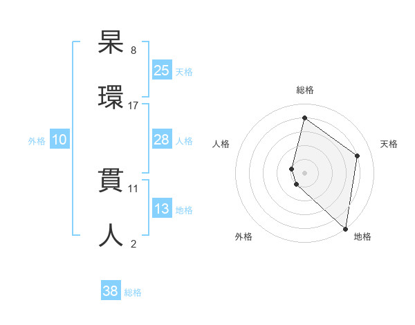杲環 貫人さんを姓名の画数から五運を鑑定