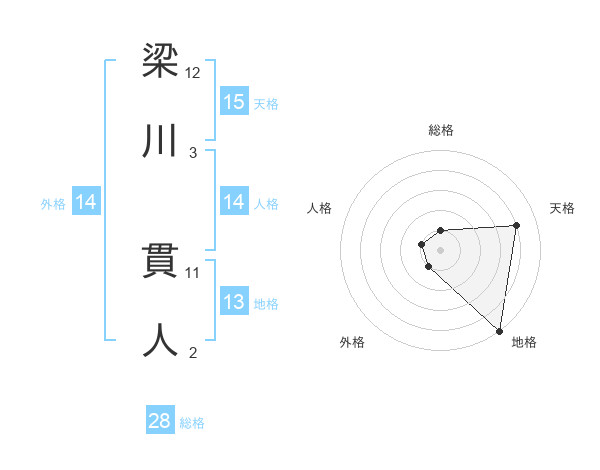 梁川 貫人さんを姓名の画数から五運を鑑定