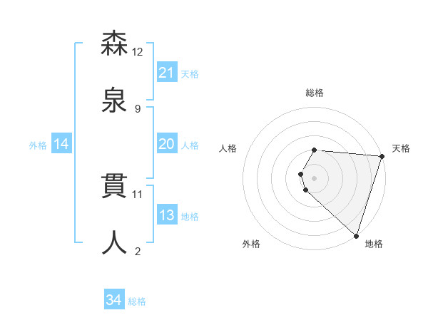 森泉 貫人さんの総格は34画の2点!