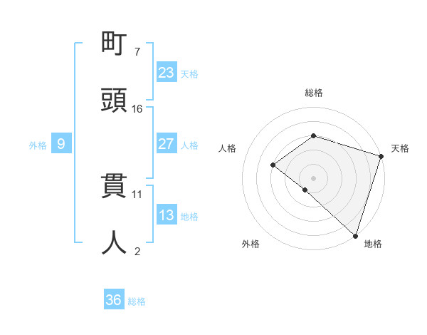 町頭 貫人さんの総格は36画の3点