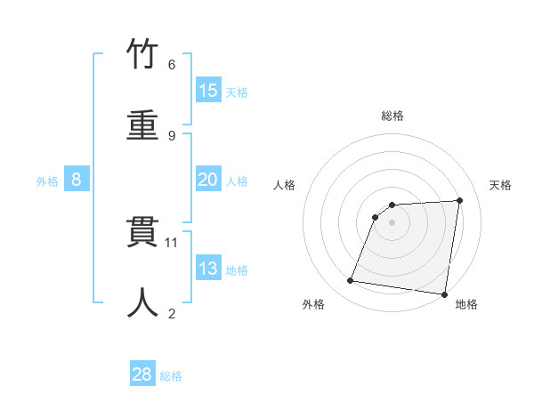 竹重 貫人さんの総格は28画の1点!