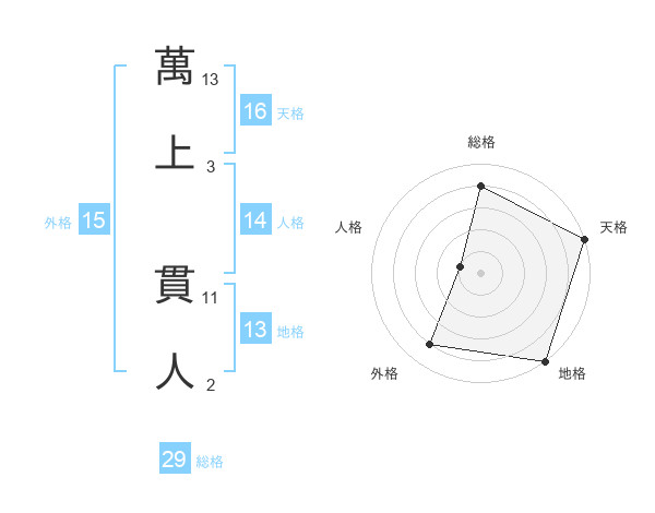 萬上 貫人さんの総格は29画の4点!