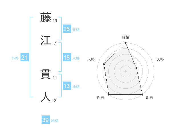 藤江 貫人さんの総格は39画の5点!