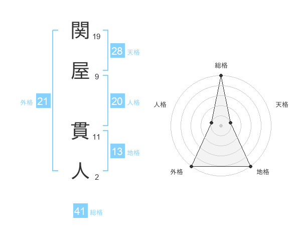 関屋 貫人さんの外格は21画の5点!
