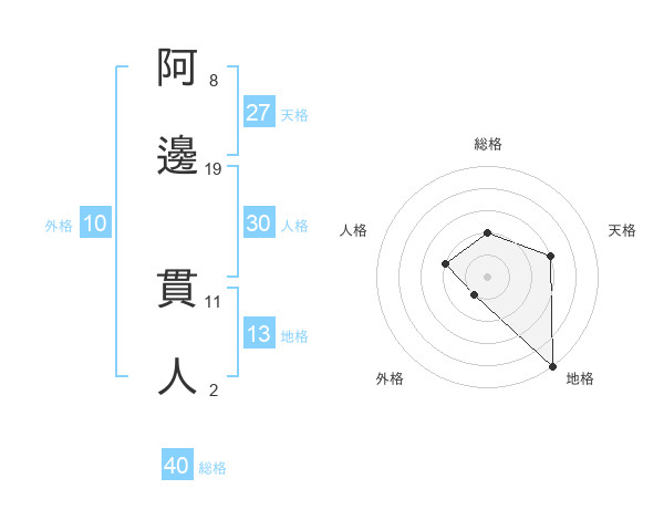 阿邊 貫人さんを姓名の画数から五運を鑑定