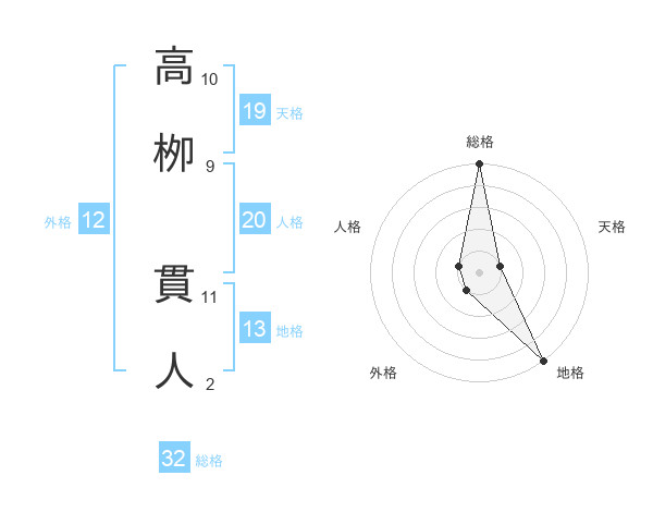 高栁 貫人さんを姓名の画数から五運を鑑定