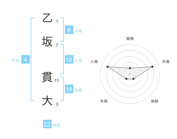 乙坂 貫大さんの総格は22画の1点!