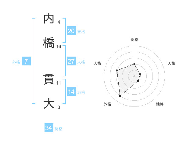 内橋 貫大さんの総格は34画の2点!