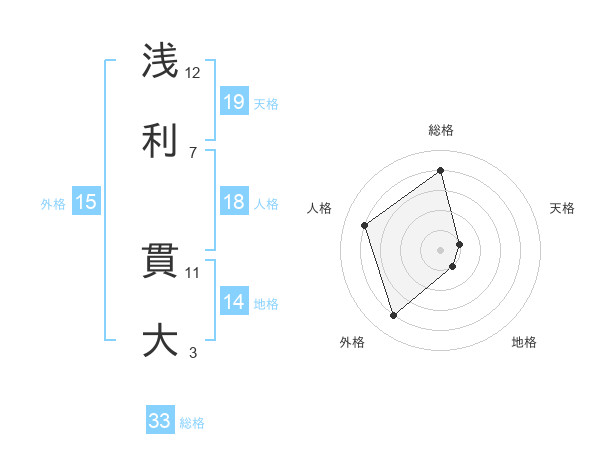 浅利 貫大さんを姓名の画数から五運を鑑定