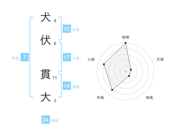 犬伏 貫大さんの総格は24画の5点!