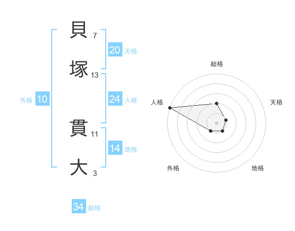 貝塚 貫大さんの総格は34画の2点!