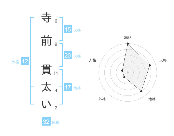 寺前 貫太いさんを姓名の画数から五運を鑑定