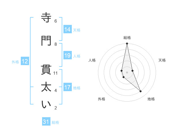 寺門 貫太いさんの総格は31画の5点!