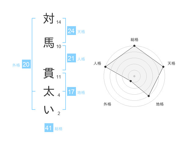対馬 貫太いさんを姓名の画数から五運を鑑定