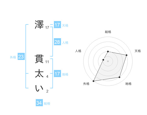 澤 貫太いさんの天格は17画の4点!
