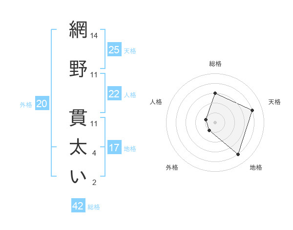 網野 貫太いさんを姓名の画数から五運を鑑定