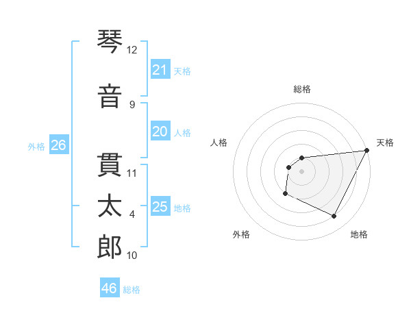 琴音 貫太郎さんの天格は21画の5点!