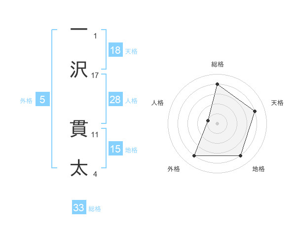 一沢 貫太さんを姓名の画数から五運を鑑定