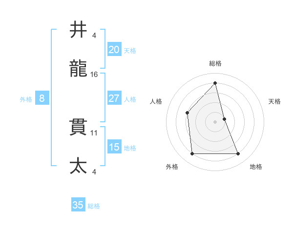井龍 貫太さんを姓名の画数から五運を鑑定