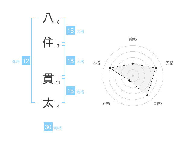 八住 貫太さんの地格は15画の4点!