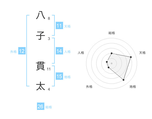 八子 貫太さんの総格は26画の2点!