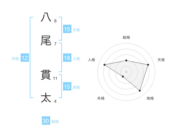 八尾 貫太さんの天格は15画の4点!
