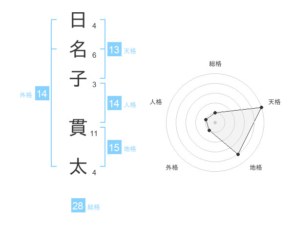 日名子 貫太さんの総格は28画の1点!