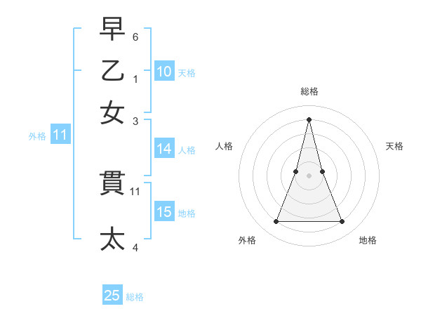 早乙女 貫太さんを姓名の画数から五運を鑑定