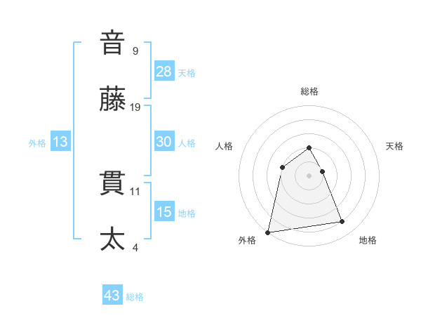 音藤 貫太さんの総格は43画の2点!