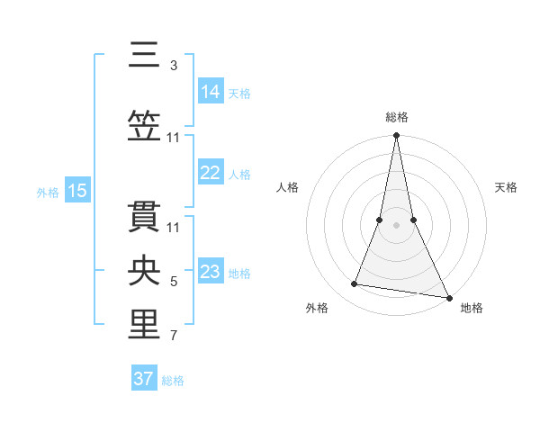 三笠 貫央里さんを姓名の画数から五運を鑑定