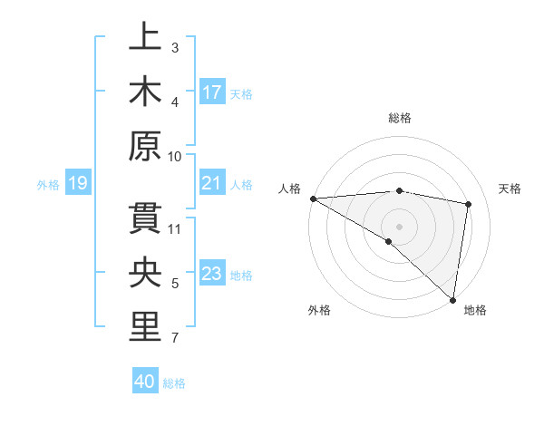 上木原 貫央里さんを姓名の画数から五運を鑑定