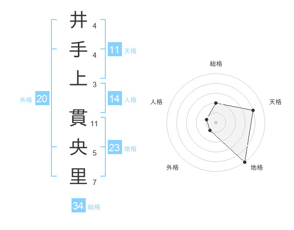 井手上 貫央里さんを姓名の画数から五運を鑑定