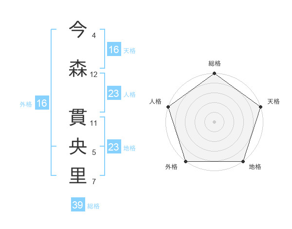 今森 貫央里さんの総格は39画の5点!