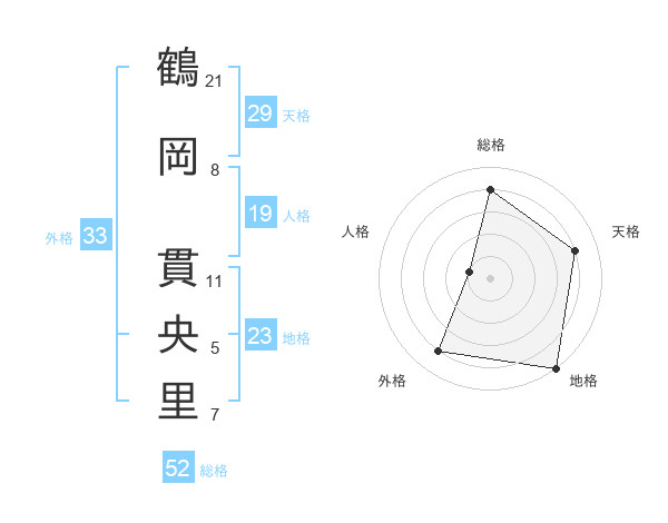鶴岡 貫央里さんを姓名の画数から五運を鑑定