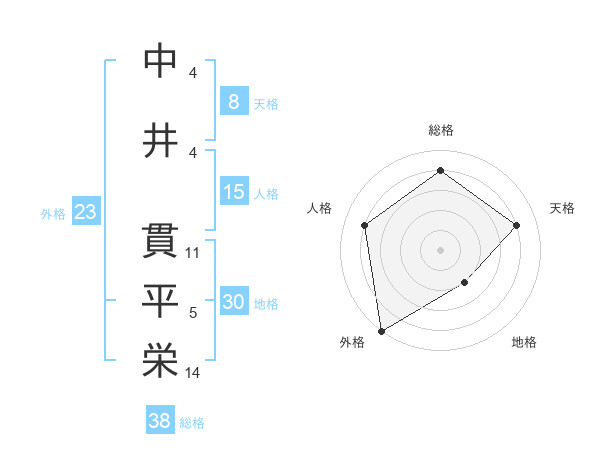中井 貫平栄さんを姓名の画数から五運を鑑定