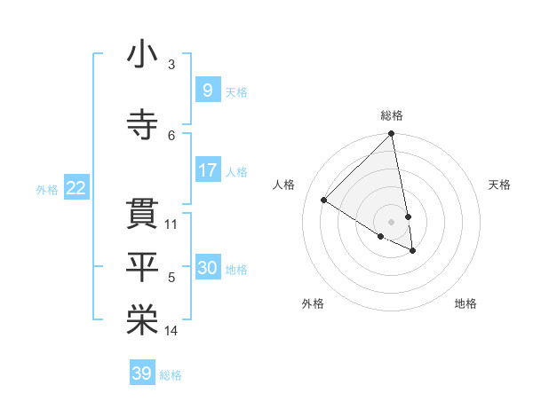 小寺 貫平栄さんを姓名の画数から五運を鑑定