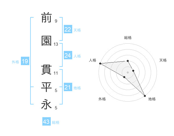 前園 貫平永さんを姓名の画数から五運を鑑定