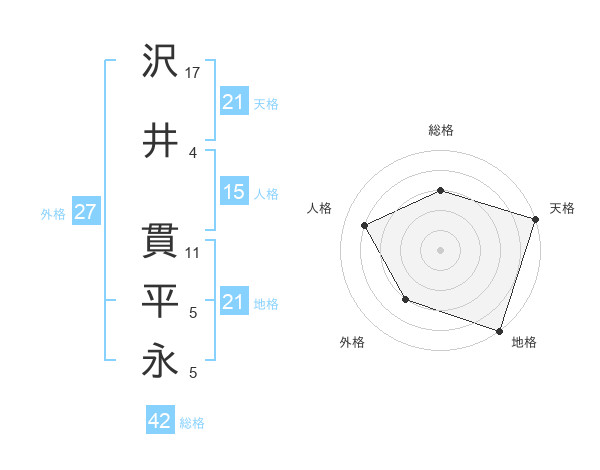 沢井 貫平永さんの地格は21画の5点!