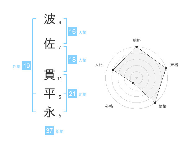 波佐 貫平永さんの総格は37画の5点!