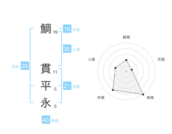 鯛 貫平永さんの地格は21画の5点!