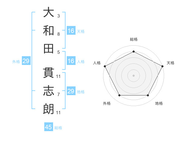 大和田 貫志朗さんの総格は45画の4点!