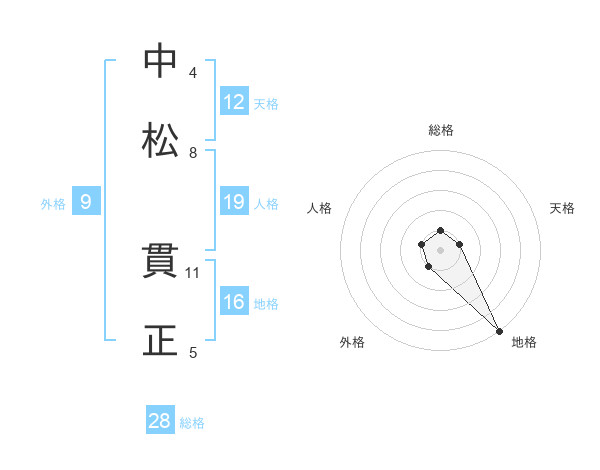 中松 貫正さんの天格は12画の1点!