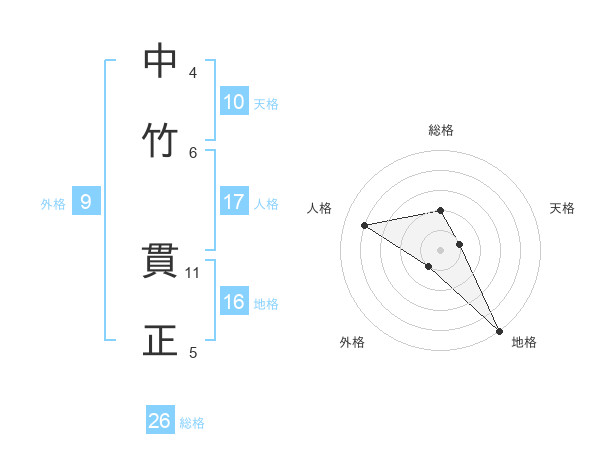 中竹 貫正さんの総格は26画の2点!
