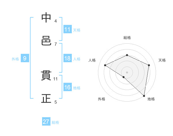 中邑 貫正さんを姓名の画数から五運を鑑定