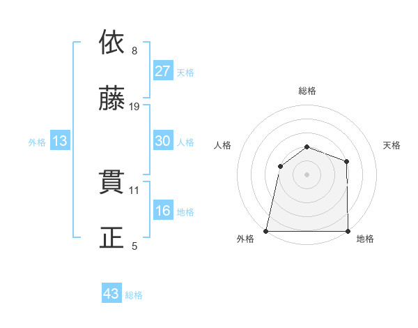 依藤 貫正さんの外格は13画の5点!