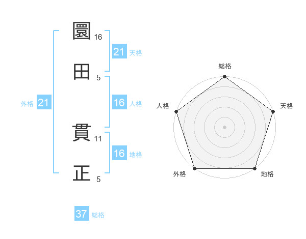 圜田 貫正さんの総格は37画の5点!